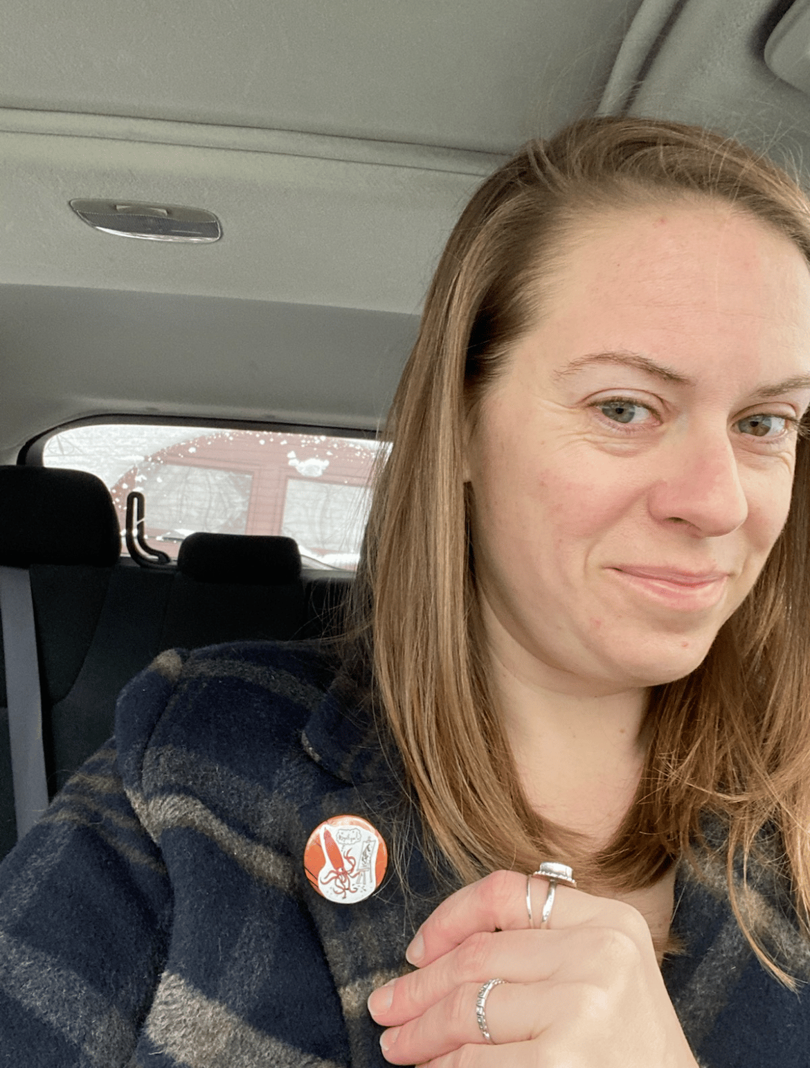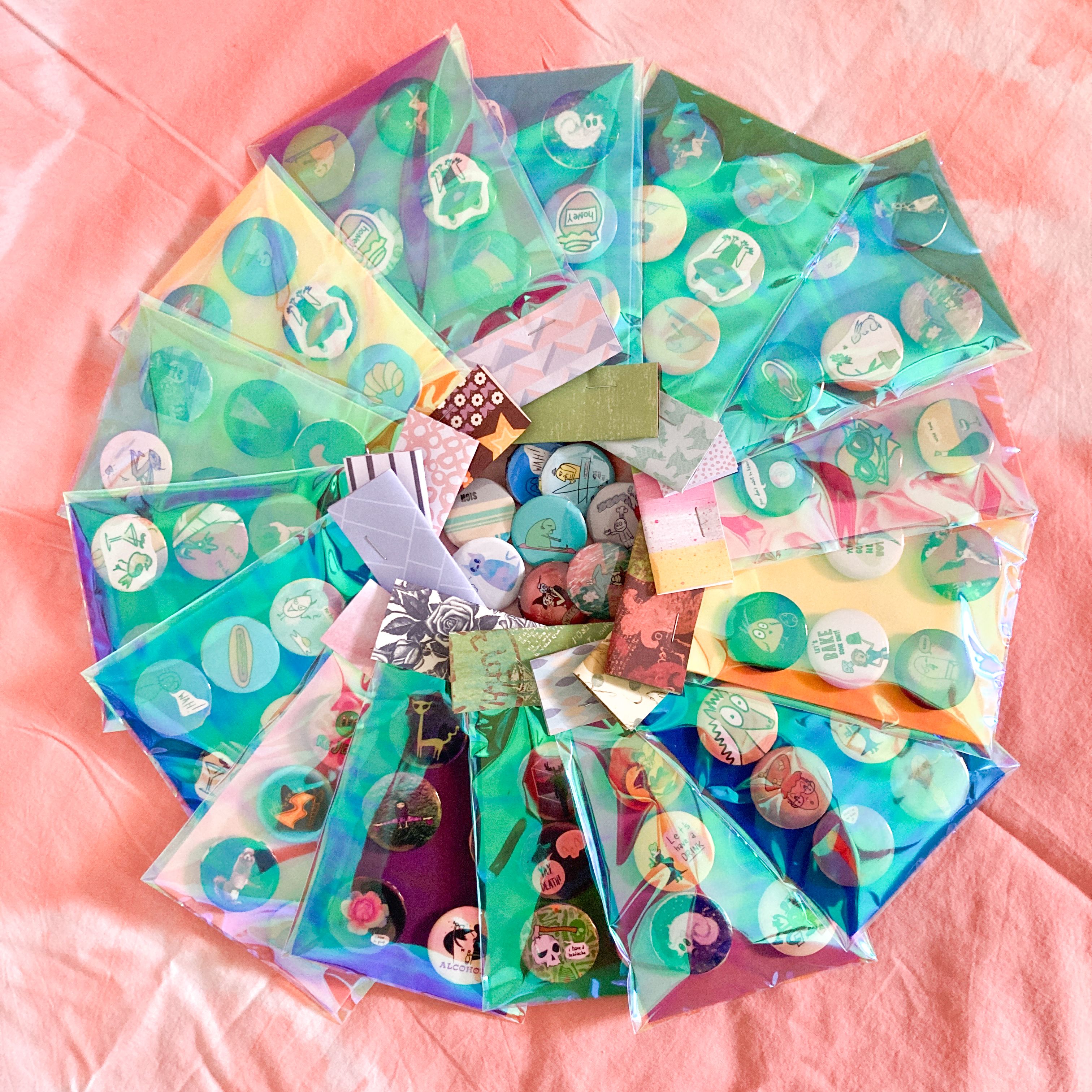 Then there was the time at a neighborhood art show where a young visitor to my table was very sweet and made my day by adding several of my buttons to her bag. (Shared with permission from the subject and her parent.)